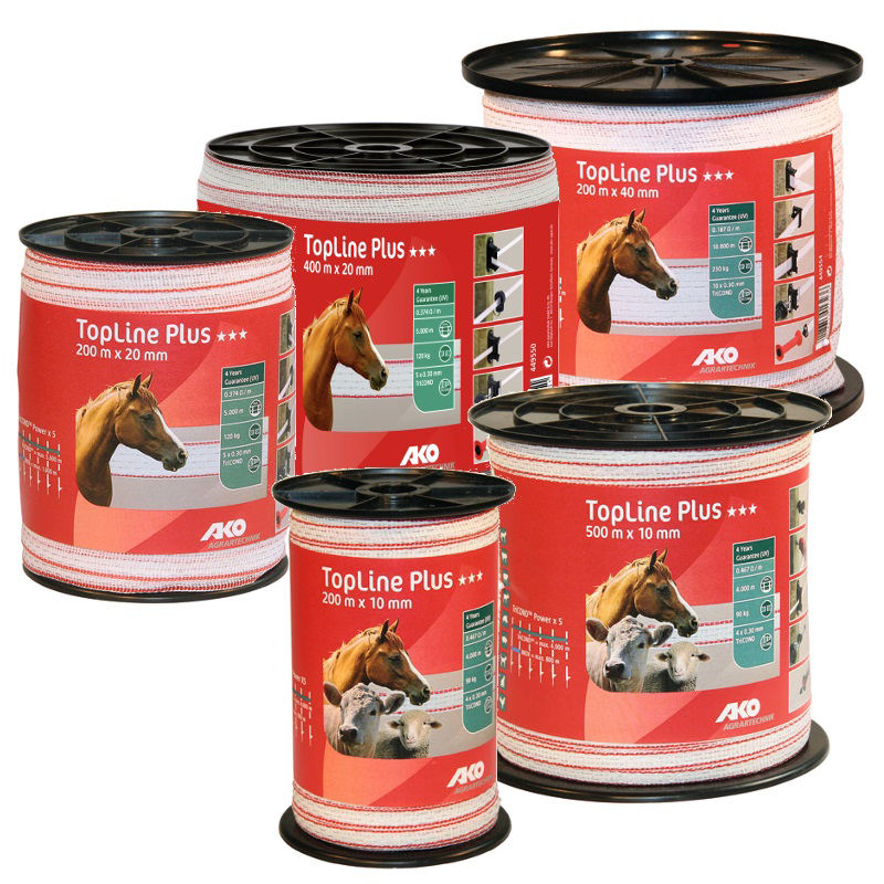 AKO TopLine Plus garandeert een uitstekende geleiding en kwaliteit voor de inzet van kleine tot middelgrootte afrasteringen. In vergelijk met RVS draden van gelijke sterkte lint, draad en koord, heeft de TopLine Plus door de RVS draden met TriCOND een 5x hogere geleiding. Daardoor heeft het een zeer lage weerstand en een 5x zo sterke werking.