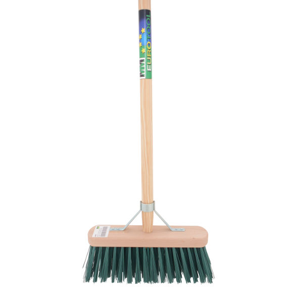 Een straatbezem met harde kunstvezels, groen. Haarlengte85 mm. Voor het verwijderen van o.a. grof vuil, betonresten en bouwafval. Ideaal bij sneeuw en nat weer.Compleet met steel 140cm (nr. ST16).