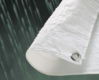 Om de 100 cm zijn de kleden voorzien van metalen ogen. Uitermate sterk en hebben een gewicht van ca. 110 gram per m².