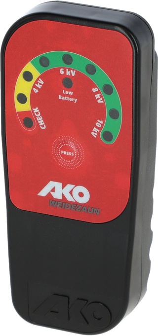 - toont de spanning in stappen tot 10.000 volt met behulp van negen heldere diodes