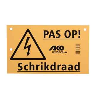 Pas op schrikdraad bordje, inclusief bevestigingsgaten.