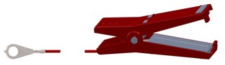 aangepaste contactvlakken van de krokodillenklemmen zorgen voor een optimaal contact van lint met een breedte van 10 - 40 mm