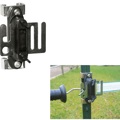 • Robuuste lintisolator met aansluitplaat van RVS voor poortgreep en aansluiting op het schrikdraadapparaat (levering zonder poortgreep)