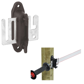 Complete poortgreep isolatorset bestaande uit 4 isolatoren, (zoals art. 44350) en 4 aansluitplaatjes (RVS) voor lint en poortgreep bevestiging.