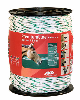 AKO PremiumLine schrikkoord wit/groen 6.5mm - 200m
