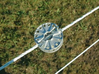 draadspanner, aluminium spanner die op iedere plaats over de draad gezet kan worden. de draad hoeft niet geknipt te worden zodat een goede on- onderbroken stroomdoorgang gewaarborgd blijft.