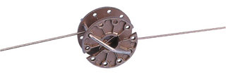 draadspanner, aluminium spanner die op iedere plaats over de draad gezet kan worden. de draad hoeft niet geknipt te worden zodat een goede on- onderbroken stroomdoorgang gewaarborgd blijft.