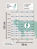 • optioneel aansluitbare, versterkte gronddraad voor de aarding over de gehele lengte van het net bij lastig bodemomstandigheden (bijv. heel zanderige of droge grond)