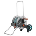 De GARDENA AquaRoll M Metal is bijzonder stevig en robuust en is bestand tegen zelfs de hoogste belasting in de tuin. De stevige metalen haspel met eendelige, robuuste haspelschijf zorgt voor een zeer hoge duurzaamheid en stabiliteit. Een Kick&Stand, hoogstaande beveiliging is gegarandeerd met de speciaal gevormde uitklapbare voetsteun. Deze maakt bewateren eenvoudiger, aangezien de slangenwagen op zijn plaats blijft, zelfs wanneer aan de slang wordt getrokken. De speciale vorm en de zichtbaar hoge positie van de wielen kunnen ook de stabiliteit van de slangenwagen ondersteunen. De slang kan eenvoudig worden opgerold met behulp van de ergonomische kunststof zwengel met zachte kunststof onderdelen. Voor ruimtebesparende opslag kan de voet worden ingevouwen, het handvat neergeklapt en de zwengel ingeklapt. De haakse slangaansluiting aan de binnenzijde van de haspel voorkomt buigen van de slang. Hierdoor is continu een maximale waterstroom gegarandeerd. De antidruppelinrichting voorkomt dat er water lekt na gebruik of tijdens het transporteren van de slangenwagen. Innovatieve vorstbescherming voor een betere duurzaamheid.
