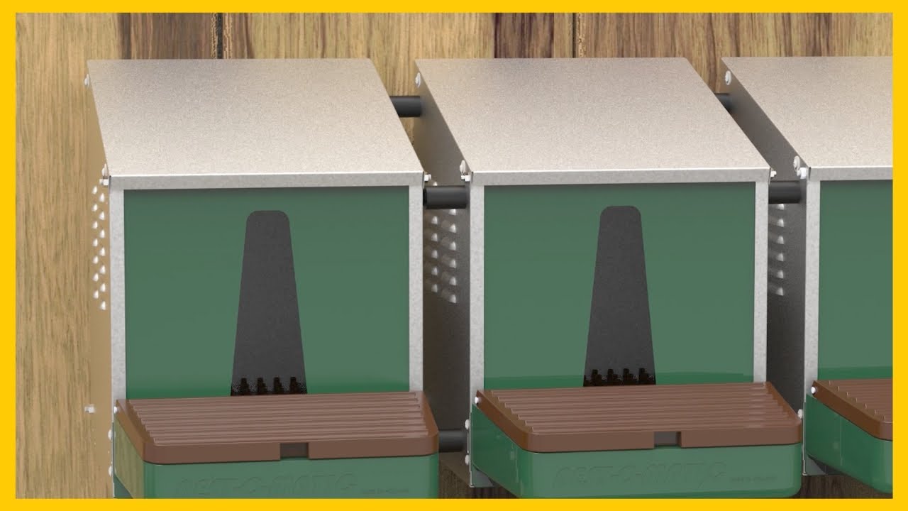 • Het schuine dak van de Nestomatic voorkomt dat de kippen op het nest gaan zitten.