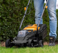 Geniet van ultieme bewegingsvrijheid zonder snoeren, dankzij de draadloze werking van deze grasmaaier. Met de verstelbare duwboom kun je comfortabel werken in een ergonomische houding.