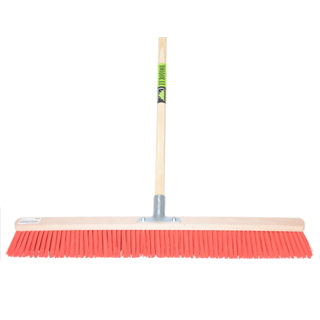 Bezem 80cm, rood nylon +stokhouder -MM- +steel 150cm