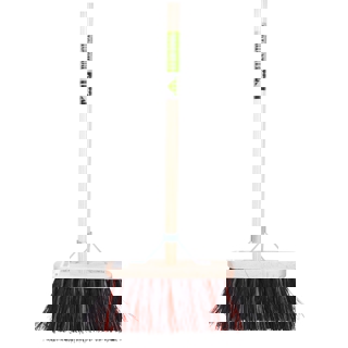 Een straatbezem met middelharde mix van natuurvezels, bassine en rode pvc kunstvezels. Haarlengte 110 mm. Voor het verwijderen van droog grof vuil op ruwe oppervlakken.