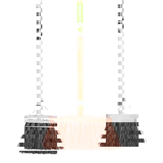 Straatbezem met harde natuurvezels, bassine/piassava. Haarlengte 135 mm. Voor het verwijderen van droog grof vuil op ruwe oppervlakken.