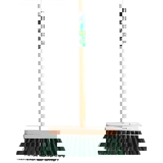 Bezem FSC 29cm, kunstvezel GROEN MM met steel 120cm -AKTIE