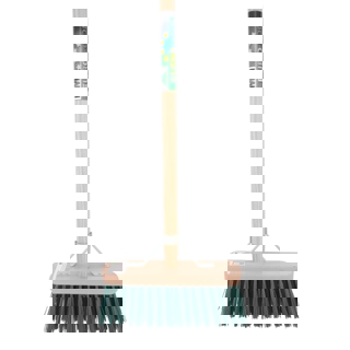 Bezem FSC 29cm, kunstvezel GROEN MM met steel 140cm