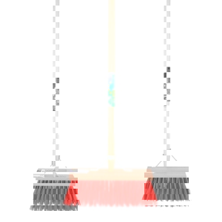 Bezem FSC 35cm, kunstvezel rood MM +steel 150cm +stokhouder