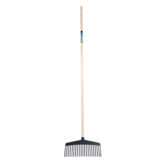 Vervaardigd uit hoogwaardig polyamide. Met 21 waaiervormig geplaatste elastische tanden. Voor het bij elkaar harken van bladeren, gras en tuinafval. Uiterst stevig.