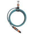 Bestaat uit 7,5 m slang, kraanstuk, slangstuk en tuinspuit.