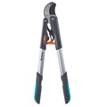 De GARDENA Comfort hefboomtakkenschaar SmartCut is een zeer krachtige en eenvoudig te gebruiken aambeeld-takkenschaar die voor verschillende snoeiwerkzaamheden kan worden gebruikt. De innovatieve gepatenteerde hefboomtechnologie maakt moeiteloos snoeien van harde takken en hard hout in vier stappen mogelijk. De hefboomfunctie wordt automatisch geactiveerd als direct snoeien niet meer gaat; het snoeien gaat daardoor snel en eenvoudig. Met de Comfort hefboomtakkenschaar SmartCut kunnen takken met een maximale diameter van 45 mm scherp en precies worden gesnoeid. Dit wordt gegarandeerd door een hoogwaardig, aluminium aambeeld en het precisiegeslepen bovenmes met antikleefcoating. De hantering is ook uitstekend. De ovalen handgrepen garanderen een uiterst goede stabiliteit met een laag gewicht. Ergonomische handgrepen met sofgrip zorgen voor een stevige grip en comfortabel werken.
