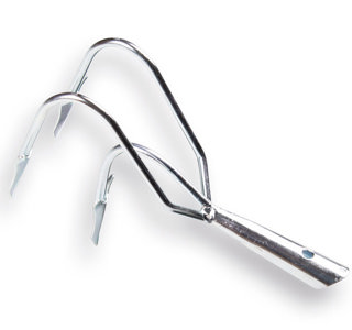 Cultivator met 3 tanden en ganzevoetjes. Verzinkt metaal, zonder steel. Voor het losmaken van de grond en het verbeteren van de waterdoorlatendheid. Werkbreedte 14 cm.