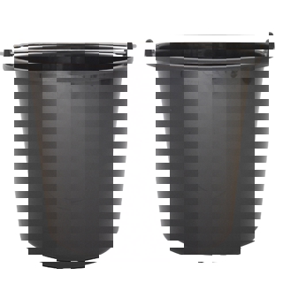 Met dubbele maatverdeling in liters en gallons, 5mm hengsel en extra versterkte bodem, uit polyethyleen. Geschikt voor levensmiddelen.