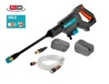 De moderne AquaClean 24/18V P4A kant-en-klare set van GARDENA, het favoriete tuinmerk van miljoenen huis- en tuinbezitters wereldwijd, is een mobiele, compacte en snoerloze drukreiniger voor uw huis en tuin. De praktische set bevat een reeks accessoires voor maximale veelzijdigheid in het dagelijks leven en is snel en ongecompliceerd in het gebruik. Deze hoogwaardige medium drukreiniger van GARDENA is een van de krachtigste en meest flexibele in zijn soort en wordt geleverd met een 18V POWER FOR ALL-accu. De waterdruk is in drie stappen instelbaar. Hardnekkig vuil of vlekken worden grondig verwijderd met de medium druk van 24 bar. De druk kan naar wens worden verlaagd tot 14 bar. De handige Soft-Clean-modus verlaagt de druk nog verder en is bij 9 bar bijzonder zacht in gebruik. Bovendien zorgt de verminderde druk voor een lager energieverbruik en dus een langere looptijd van de accu. Dit betekent dat deze aantrekkelijke drukreiniger ongeveer 38, 20 of 16 minuten werkt, afhankelijk van de gebruiksmodus. U kunt de accustatus controleren met behulp van het geïntegreerde LED-display. De meegeleverde oplaadbare accu met een capaciteit van 18V en 2,5 Ah is verwisselbaar, snel klaar voor gebruik en te gebruiken met diverse andere compatibele POWER FOR ALL ALLIANCE gereedschappen. De POWER FOR ALL ALLIANCE is een van de grootste merkoverschrijdende accu allianties van toonaangevende fabrikanten wereldwijd en biedt de grootste verscheidenheid aan gebruikstoepassingen voor huis en tuin. De set wordt geleverd met de juiste oplader. De set bevat drie verschillende spuitmondstukken voor verschillende spuitrichtingen, 0°, 15° of 40°. Elk mondstuk is 360° draaibaar ten opzichte van de lans voor meer flexibiliteit bij het reinigen. De 0° puntsproeier is ideaal voor krachtige reiniging in krappe ruimtes. Een 5 m lange aanzuigslang met filter, vlotter en klem is bij de set inbegrepen. De drukreiniger kan worden aangesloten op een tuinslang met een OGS kraanaansluiting. De machine is krachtig genoeg om water op te zuigen vanaf een diepte tot 2 m dankzij de automatische zuigfunctie die een debiet van 250 liter per uur levert. Het lage gewicht van 1,5 kg zonder accu en het slimme ontwerp, inclusief de praktische bedieningshandgreep maken het apparaat langere tijd comfortabel te gebruiken. Nog meer flexibiliteit wordt geboden door de meegeleverde korte en lange spuitlans. Met de AquaClean 24/18V P4A kant-en-klare set van GARDENA kunt u uw tuin, tuinmeubilair, auto, fiets maar ook de muren en rolluiken van uw huis grondig reinigen. Ontworpen om aan uw wensen te voldoen en om krachtig of zachter te reinigen.