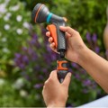 De Classic multifunctionele sproeier biedt een keuze uit 4 sproeistanden. De kegelstraal is bedoeld voor het bewateren van kwetsbare planten, terwijl de harde straal bedoeld is om mee te reinigen. De volumestraal is geschikt voor het bewateren van potplanten en de zachte sproeistand is geschikt voor het grondig bewateren van bloem- en groentebedden. Je kan moeiteloos wisselen tussen sproeistanden, zodat je snel en effectief water kan geven of schoonmaakklussen kan uitvoeren.