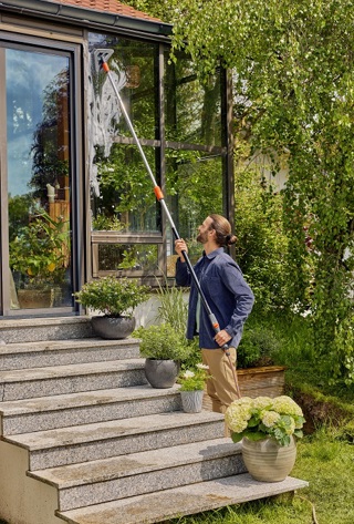 De GARDENA Cleansystem borstel zacht flex voor het voorzichtig reinigen van grotere moeilijk bereikbare oppervlakken, zoals pergola's.
