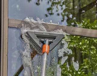 In combinatie met de waterdoorlatende stelen (art. 18000, 18002, 18804) is bijzonder efficiënt gebruik op gevoelige oppervlakken mogelijk. Het gebruik van GARDENA Shampoo (art. 1680) verhoogt de efficiëntie van de steelborstel nog verder.