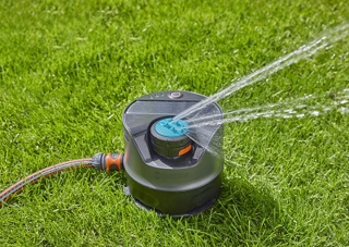 . Het AquaPrecise systeem bewatert tot 320 m² met een programmeerbare omtrek. De meervoudige sproeier stuurt het water tot 10 m ver, gelijkmatig verdeeld, voor optimale opname door de planten. De sproeier staat laag bij de grond, zodat je niet bang hoeft te zijn voor verstoring door wind en voor waterverspilling. Het sproeisysteem is ontworpen voor gelijkmatige beregening van onregelmatige vormen, dankzij de individueel te programmeren contourpunten.