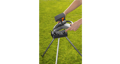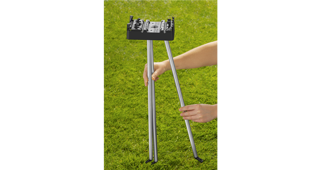 Eenvoudige installatie en stabiel. Montage is eenvoudig en vereist geen gereedschap. De poten van het statief kunnen snel in- en uitgeklapt worden. Hierdoor kan het statief ook ruimtebesparend worden opgeborgen. Metalen haringen worden meegeleverd om de drie poten te stabiliseren, voor stabiliteit en ondersteuning in elke situatie. De verschillende soorten sproeiers kunnen eenvoudig aan de verhoging worden bevestigd dankzij de plug-in aansluiting. Welke sproeier waar wordt bevestigd, staat direct op de plaat beschreven.