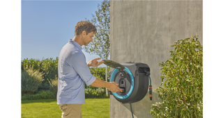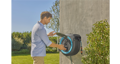 De opbergbox zorgt voor een groot bereik en ruimtebesparende plaatsing aan de muur. De box is in een hoek van 180° op de muurhouder draaibaar om elk deel van de tuin flexibel te besproeien zonder de slang te knikken. De muurhouder is ook een handige plek om spuiten, broezen en andere hulpstukken binnen handbereik op te bergen.