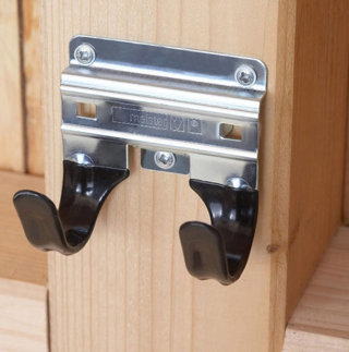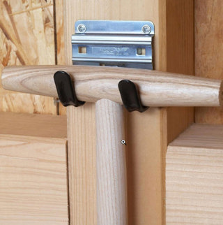 Dubbele haak voor moeiteloos “ophangen”, speciaal voor gereedschap met een T-handgreep zoals spades etc.