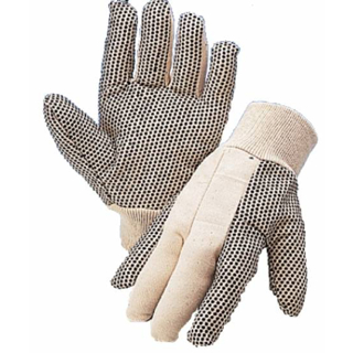 Katoen met tricot manchet en zwarte pvc nopjes. Voor lichte werkzaamheden en grip op gladde voorwerpen.