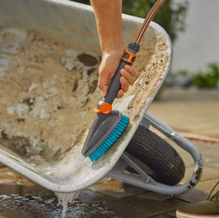 Compacte wasborstel voor het moeiteloos schoonmaken van tuinmeubelen, garagedeuren, glasoppervlakken, auto's etc. Met waterdoorvoer via Original GARDENA Systemaansluiting. Waterdoorvoer traploos regelbaar en afsluitbaar.