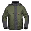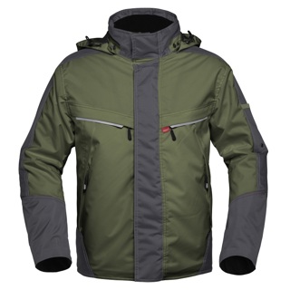 verdekte ritssluiting met verdekte drukknopen, napoleonzak met rits, 2 ingezette zijzakken met rits, binnenzak met rits, 2 ingezette borstzakken met rits waarvan rechter borstzak voorzien is van D-ring voor badgehouder, pennenzakje met nestelring, ademend, wind- en waterdicht met getapete naden, windvangers, verlengd rugpand, reflecterende piping, verstelbare afneembare capuchon met drukknopen, fleece aan binnenzijde kraag, kinbeschermer
