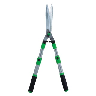 lichte heggenschaar met opgeklonken golfsnede messen, hardverchroomd, met aluminium buizen, tegen kou geïsoleerde handgrepen, instelbare borgmoer, aanslagdemper en telescoophandgrepen met 4 standen