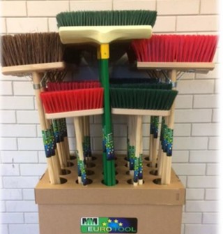 8 x Bezem FSC 29cm, bassine/stalks MM+ steel 150cm+ stokhouder