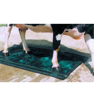 voorzien van een hoogkwalitatieve schuimrubber vulling. de mat zuigt zichzelf vol met het gebruikte ontsmettingsmiddel. zodra de mat door de koe wordt betreden, komt het ontsmettingsmiddel vrij. de mat kan ongeveer 30 liter ontsmettingsvloeistof opnemen, voldoende voor een behandeling van 80 koeien. de mat heeft een levensduur van 100.000 koebehandelingen. de mat kan worden voorzien van een speciale hoes (stevig dekzeil), voorkomt onnodig verlies van vloeistof via de onder en zijkant.