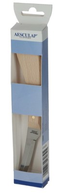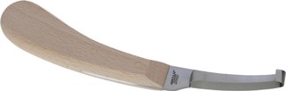 Hoefmes Aesculap, rechtshandig, gesmeed roestvrijstaal. Heft is van edelhout. Dit mes is extra nageslepen.