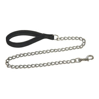 Robuuste chrome kettinglijn met nylon handgreep met zachte inleg voor extra comfort. Deze kettinglijnen zijn zeer geschikt voor honden die graag in hun riem bijten. De riem is voorzien van een stevige karabijnsluiting.
