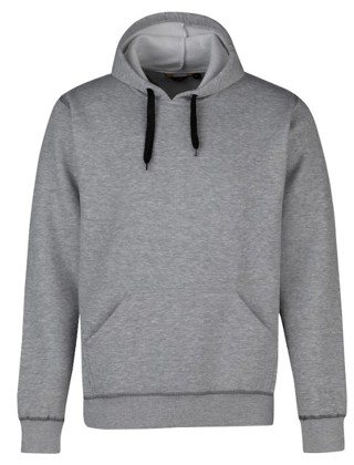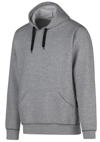 Voorzien van vaste capuchon, open buikzak en verstelbare koorden.