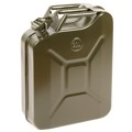 Groen gelakte stalen jerrycan met stevige afsluiting. Inhoud 20 liter.