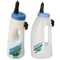 De fles, gemaakt van supersterk kunststof, voor een complete melkvoeding aan pasgeboren kalveren.