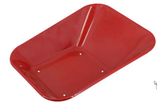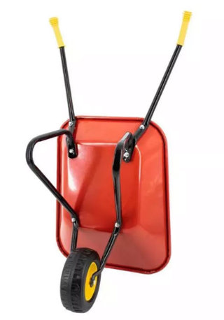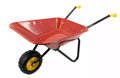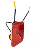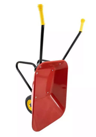 De kinderkruiwagen heeft een metalen oppervlak met poedercoating en is verkrijgbaar in de kleuren rood en groen. De antislip kunststof handvatten zijn gemakkelijk vast te pakken voor kinderen.