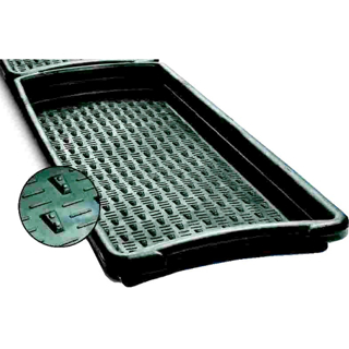 Uit licht maar sterk/vormvast polyethyleen, voorzien van speciaal noppen profiel, dit zorgt voor voldoende openzetten van de klauw zodat deze ook op de moeilijk bereikbare plaatsen wordt ontsmet. Baden zijn koppelbaar. De bak is voorzien van maatverdeling.