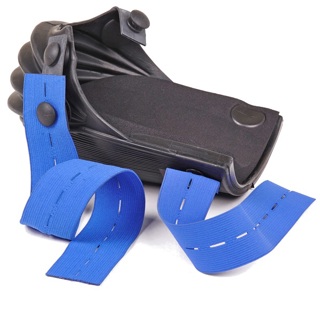 Volledige rubber kniebeschermer lang model met 4 vouwen en verwisselbare kussens.