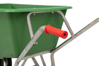 Stevige kruiwagen met grote 160 liter bak en NooitMeerLek wiel, extra stabiel.
