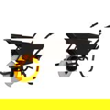 Deze kruiwagen heeft een stang voor de band waardoor kiepen uiterst makkelijk is.